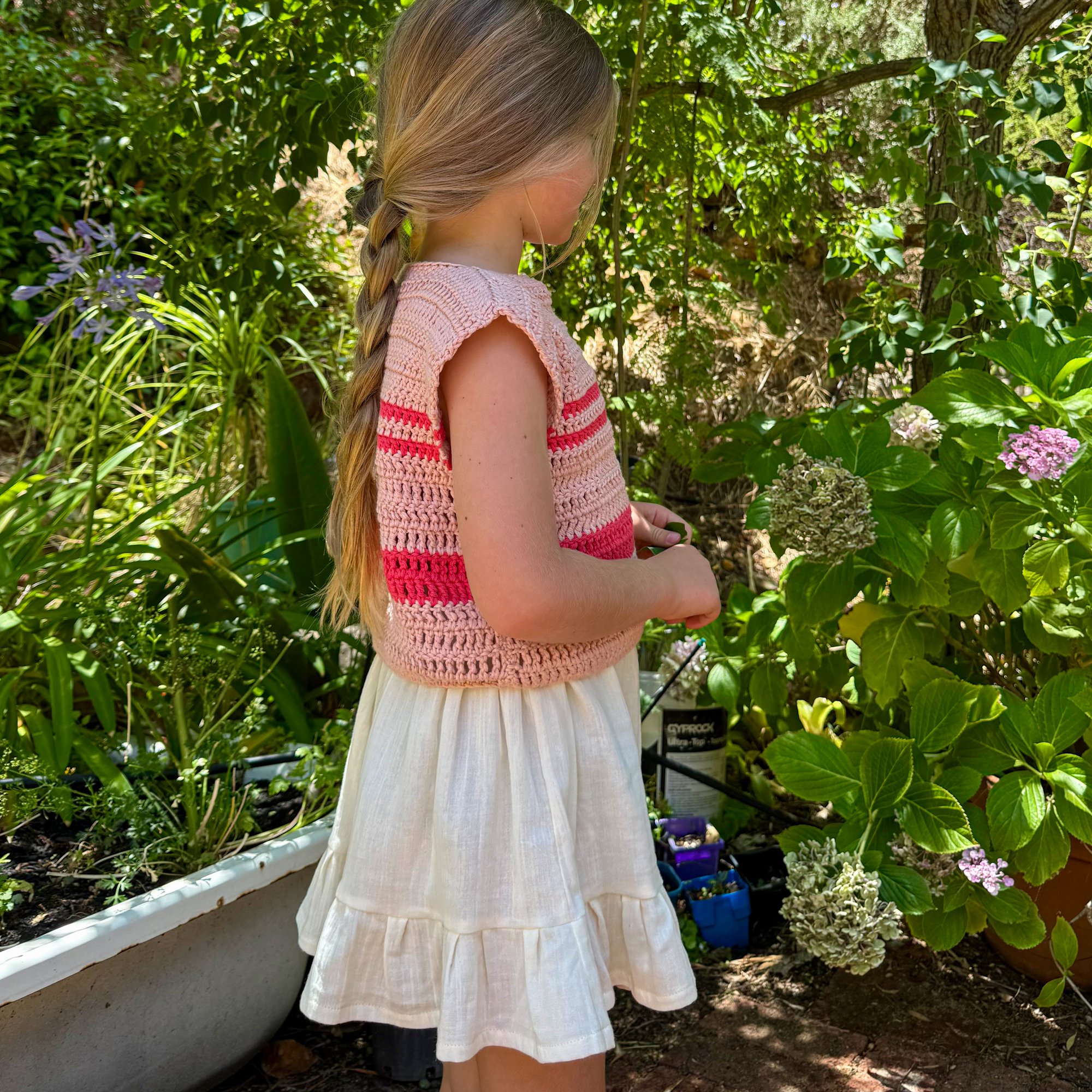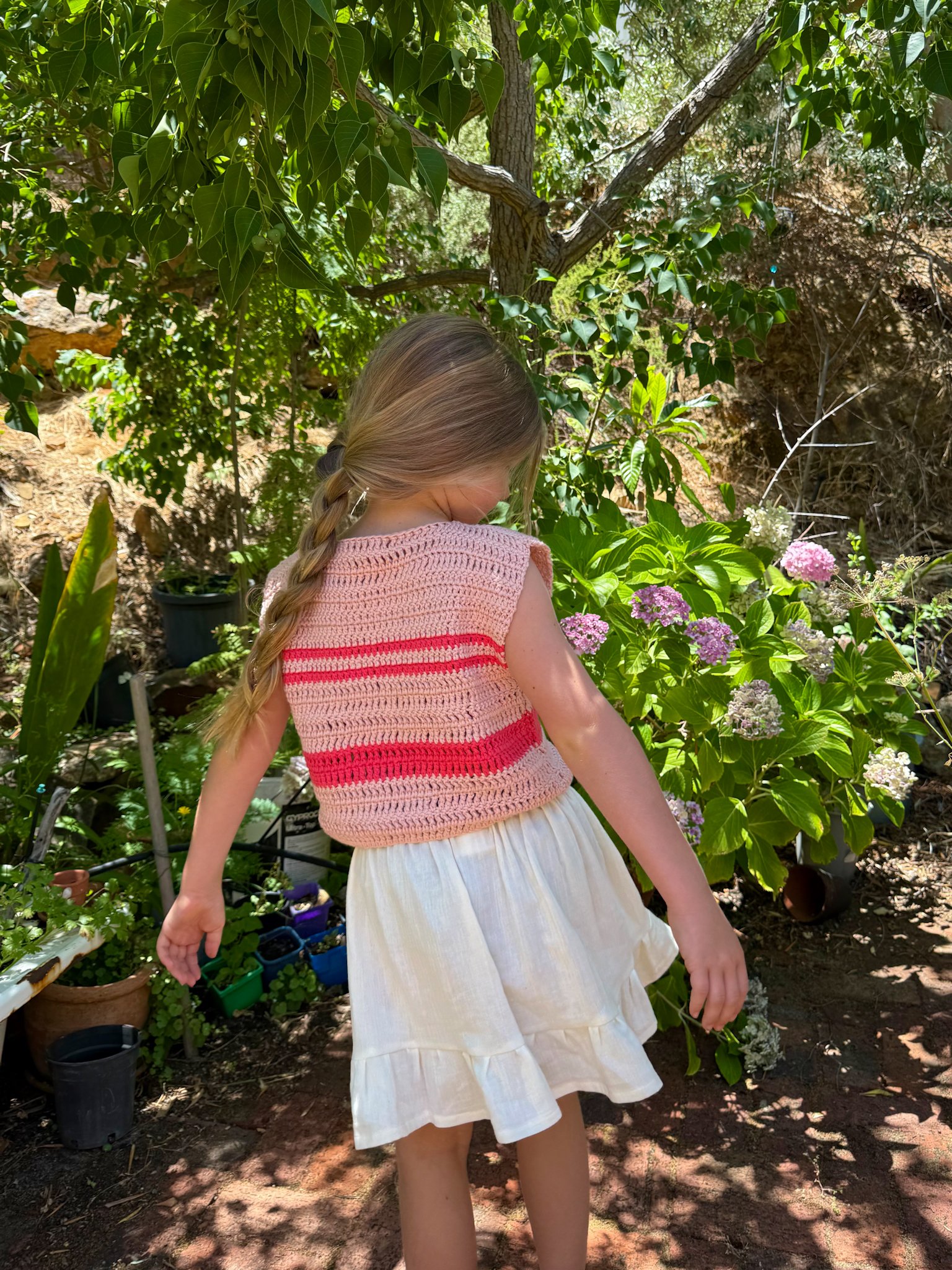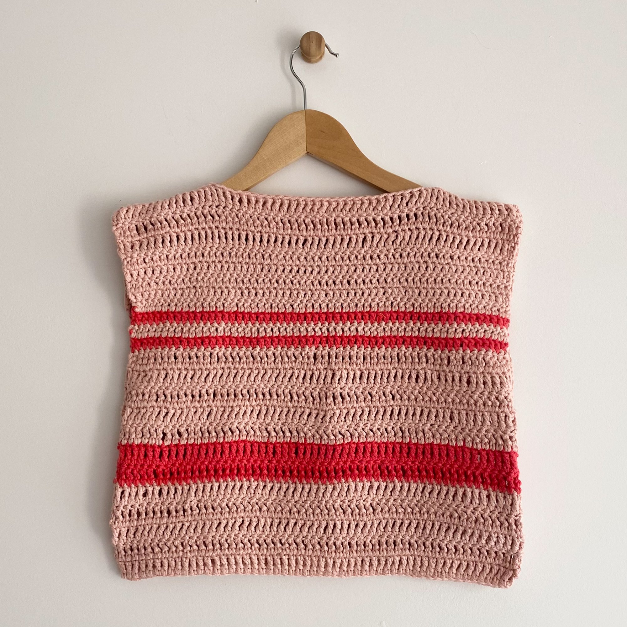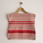 Boxy crochet top handmade with buttery-soft 100% cotton yarn in pink and watermelon. Can be worn as a top or vest. Upsize for an over-sized look.