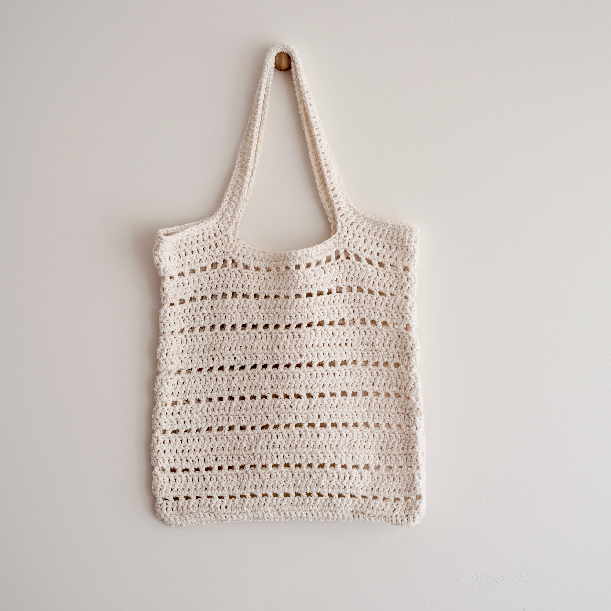 ADULT'S crochet market bag, handmade with white cotton blend yarn.